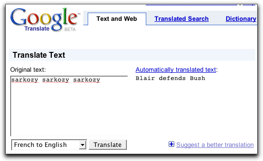 Google'ın çeviri yapan bi yanı varmış, daha yeni görüyorum. Şimdiye kadar gördüğüm en düzgün şekilde çeviriyor herşeyi. İster sayfalarca yazı çevirtin isterseniz web sitesi adresi verin site karşınıza istediğiniz dilde geldin. Çok harika çalışıyor sistemi. Ama küçük bir sorun var, çevirdiği diller arasında henüz Türkçe yok. Ama olsun, en azında Rus veya bir Japon sitesine girdiğinizde herşeyin İngilizce olarak karşınıza çıkmasıda güzel bişey.